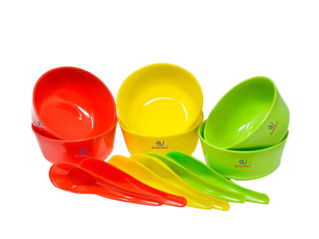 Sarthak Uphaar Plastic Microwave Safe Soup Bowl Set of 12 Pieces (6 Bowl, 6 Spoon) Plastic Soup Bowl (Multicolor, Pack of 12)